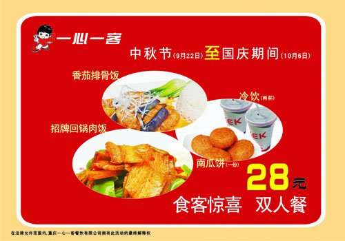- 2017年2月24日重庆一心一客餐饮公司是一家产销健康食品,倡导优质生活的专业简餐连锁企业。2002年,一心一客在美食之都重庆南坪开设了第一家餐厅。怀着“生产美味,传递健康”的信念和使命,开始了打造专业简餐连锁品牌的漫漫征程。开业至今,公司已从一家经营面积50多平方、员工仅6人的餐厅,发展到现在员工人200余人、拥有中央厨房配送中心、经营面积8000多平方的餐饮公司;并开设直营餐厅十余家、日均为10000多位顾客提供...