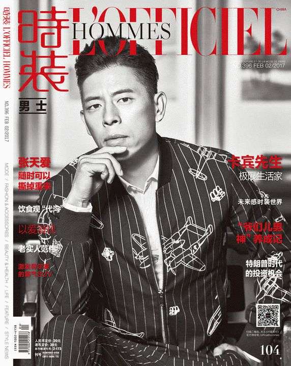 - 2017年2月20日》二月刊封面披露,人物不是明星也不是名模,而是一位中国服装设计师、品牌创始人。人们称他为“卡宾先生”,他是创始人,也是艺术总监。长期从事大强度体育运动,卡宾先生面孔棱角坚硬。他曾留过那种头中央长发编成许多小辫,四周剃光,嘻哈歌手般的前卫发型。这次在封面上他的发型稍稍正式了一点,但穿着依然沿袭“颠覆流行”的卡宾一件深底色的夹克衫,上面印着白色条纹的图案,是略抽象的飞机图案,呼应。与飞行太空相关的,还...