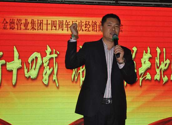 - 2017年2月18日2014年11月25日晚18点,金德管业十四周年厂庆联谊会在北京丰台区热带雨林酒店隆重举行,来自金德北京地区的经销商朋友齐聚一堂,共同度过了这一美好时刻。金德1999年建厂,到现在已经走过了14个年头,回首这十四年,金德品牌价值突破上百亿,在行业发展的路途中,留下了不可磨灭的印记;这十四年,金德与广大的经销朋友携手同行,共谋发展,在管材行业留下了辉煌灿烂的新篇章。在联谊会之余,我们有幸与金德北京分...