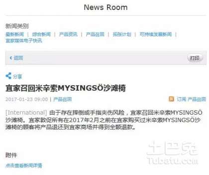 - 2017年2月18日】众所周知,作为与居家生活息息相关的家居产品,其安全性与消费者的人身安全也息息相关。今年伊始,江苏省3家企业召回一批缺乏警示语、可能导致儿童意外伤害的儿童家具产品。2017年1月,宜家在大陆主动召回6530件受影响的进口米辛沙滩椅。或许,值得期待的是,家居问题产品的召回制度就会日趋完善。宜家主动召回问题产品国内召回制度何时填补空白?(图片来源网络)宜家为何愿意主动召回产品?去年宜家因不愿在中国召回...