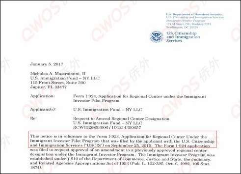- 2017年2月13日侨外美国投资移民2015年推出的纽约长岛体育馆重建项目进展顺利:不仅项目的I-924范例申请和投资人的I-526申请均已获得移民局批准,且项目新馆将于今年4月开业,已吸引了各项重大赛事不断签约,市场运营前景极佳。I-924、I-526双获批,绿卡获批只是时间问题长岛体育馆重建项目I-924、I-526的双双获批,意味着项目无论是商业可行性、就业创造还是EB-5合规性,均得到移民局充分认可。只要个人...