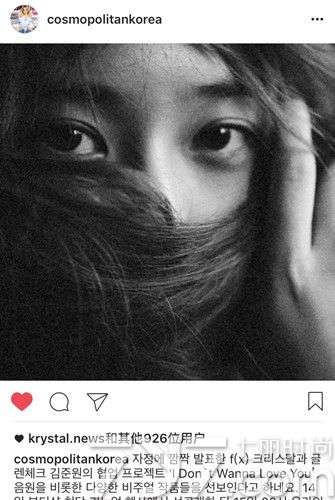 - 2017年2月13日另外,郑秀晶和金俊元的歌曲《IDon`tWannaLoveYou》在14日向15日迈进的子夜(夜十二点)将会公开,“IDon’tWannaLoveYou”.激动的郑秀晶还在自己的ins上难得的打了一次广告,希望大家支持她的歌曲。今日消息,f(x)成员郑秀晶Krystal与GlenCheck成员金俊元将展开特别合作。此次由郑秀晶Krystal与金俊元展开合作的企划《IDon`tWannaLoveYo...