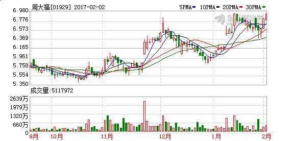 - 2017年2月2日在金饰行业里,周大福可谓是元老,有80年的历史,足以证明它的实力,周大福的款式新颖多变受到无数年轻男女的喜爱,周大福的价格廉价均受适合各个阶段消费者的能力,临近春节,周大福官方旗舰店十二生肖“鸡”祥如意,传统生肖别样演绎,萌趣可爱,值得大家前来挑选,让2017好运连连。周大福(股票代号:1929)是香港上市市值最大珠宝公司,专营周大福品牌珠宝玉石金饰业务,是集原料采购、生产设计、零售服务的综合性经...