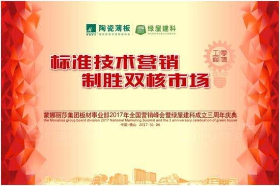 - 2017年1月30日蒙娜丽莎陶瓷薄板自2007年推出国内第一片陶瓷薄板以来,就一直全力推动陶瓷薄板在国内市场的普及和发展。历经十载发展,陶瓷薄板已经成为国内外厂家青睐、消费者认可的行业发展趋势,以“陶瓷薄板”为主力产品的行业新拐点已经到来。中国陶瓷网讯面对市场快速增长的机遇以及竞争日渐激烈的环境,蒙娜丽莎陶瓷薄板将采取什么战略措施提升竞争力,如何保持行业领导者地位?这些问题,在蒙娜丽莎陶瓷薄板2017年全国经销商营销...