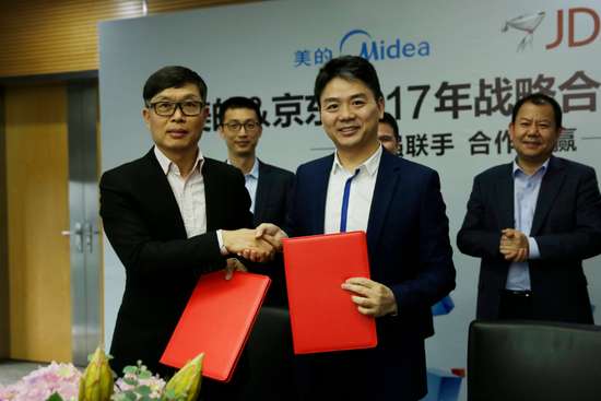 - 2017年1月29日网易科技讯1月17日消息,1月16日,京东CEO刘强东到访美的,与美的董事长兼总裁方洪波签署了一份年度规模200亿的全面战略合作协议。根据协议,双方将进一步加强战略合作关系,全面深化在智能家电、智能家居、渠道拓展、产品定制、大数据分析等领域的战略合作,共同推动家电领行业的升级转型。刘强东指出,京东通过在零售全产业链进行智慧化布局,依靠人工智能和自动化技术,帮助大量传统品牌商大幅提高了效率、降低了成...
