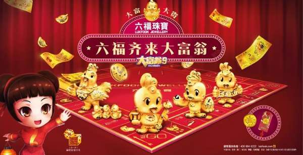 - 2017年1月27日为迎接喜气洋洋的2017年春节,《大富翁9》手游与六福珠宝携手合作,联合推出「六福齐来大富翁」新春活动,全新卡片和礼物道具登场,参与游戏内比赛还有机会获得大富翁限定款黄金大奖!27年经典传承的大富翁系列被誉为华人国民游戏,孙小美、钱夫人、沙隆巴斯、阿土伯等经典角色深入人心。六福珠宝是来自香港的知名珠宝品牌,现时于全球拥有近1500间分店,广受消费者喜爱。作为勇于创新的珠宝品牌,此次六福珠宝与年轻群...