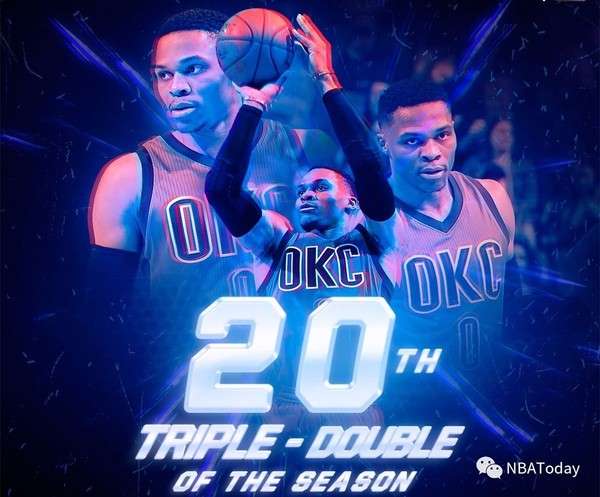 - 2017年1月17日雷霆客场险胜国王,拉塞尔-威斯布鲁克出战36分钟21投11中(三分5投4中),罚球11罚10中得到36分11篮板10次助攻4个抢断。这是威少本赛季第11次在拿到至少30分情况下送出三双,超越1988-89赛季的乔丹(10次),成为最近30年里单季拿到30+三双次数最多的球员。威少连续第3场比赛拿下三双,同时这也是他赛季第20次三双。单赛季20次三双排名历史第7位,追平了1962-63赛季的“大O”...