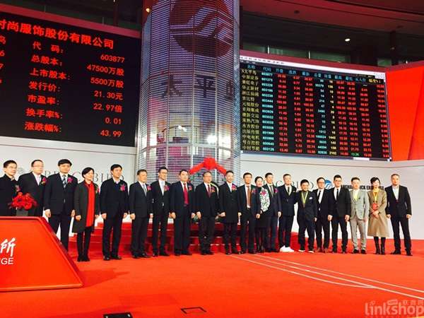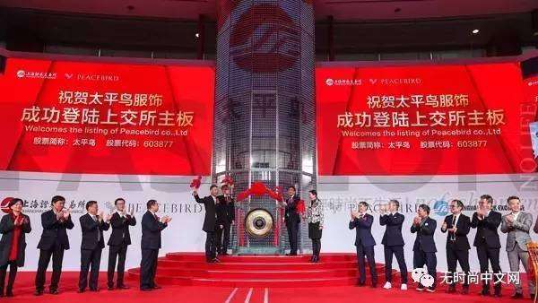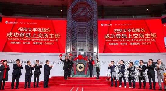 - 2017年1月10日消息:2017年1月9日上午9时30分,宁波时尚服饰股份有限公司(以下简称“太平鸟”)于上海证券交易所正式上市。成为继服饰、报喜鸟、步森股份和太平鸟首次将发行5500万股,占总股本的比例不超过20%。募投资金将主要聚焦于营销网络建设、太平鸟慈东服饰整理配送物流中心以及系统建设,同时还将用于新增238家直营门店。“上市对我来说,只是一个平台而已。这不仅仅是简单的融资,我更希望发扬我们原创的力量,上市...