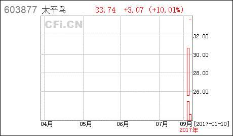 - 2017年1月10日太平鸟登陆上交所现场:有人退场,有人入场。在本土零售企业纷纷谋求转型的同时,周一,专注时尚服饰零售品牌的宁波太平鸟时尚服饰股份有限公司(以下简称“太平鸟”)正式登陆上海证券交易所,)开盘后毫无意外即封涨停板,涨幅为A股新股首日交易最高涨幅43.99%,报太平鸟此次IPO以每股21.30元招股,发行市盈率仅为22.97,约为A股纺织服装、服饰业类别公司平均43.98倍市盈率的一半,发行估值101.1...