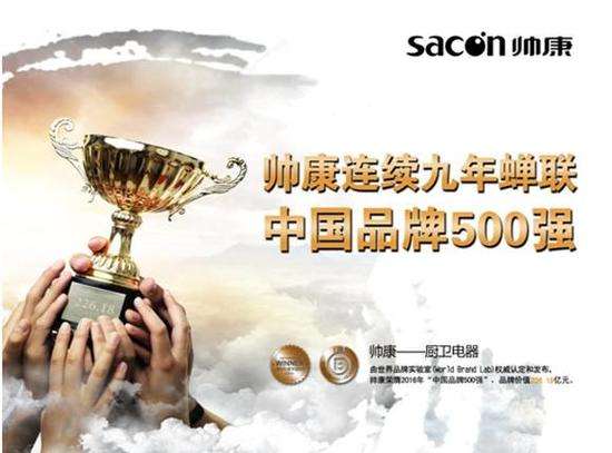 - 2017年1月10日(原标题:揭秘:高端厨卫品牌帅康是如何炼成的?)2008年,帅康以43.65亿元品牌价值首次入选世界品牌实验室《中国500最具价值品牌》排行榜。自此,帅康连续九年荣登《中国500最具价值品牌》排行榜厨卫行业榜首,到2016年,其品牌价值已高达226.18亿元。九年时间,品牌价值增长四倍之多,帅康已然成为我国高端厨卫品牌的一面旗帜,持续引领中国厨卫电器科技进步之道,更成为千万家庭的品质首选。1984...