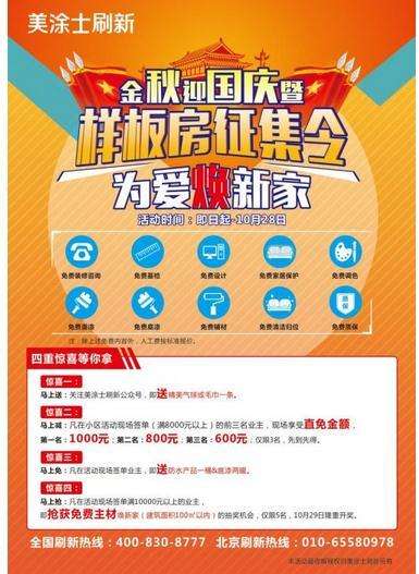 - 2017年1月9日高考、欧洲杯、618狂欢……这个6月注定是热闹非凡!而美涂士正式启动的广佛同城“免费刷新家”样板房征集活动,更是令这个6月“热情如火”!注意,重要事情说三遍:美涂士“免费刷新家”样板房征集!美涂士“免费刷新家”样板房征集!美涂士“免费刷新家”样板房征集!以往人们刷新房子的时候,不但费事、花钱,还得搬家!但是现在有了美涂士刷新服务,什么都不用愁!!!不搬家,不动手,边刷边住,更重要的是,美涂士将为参...