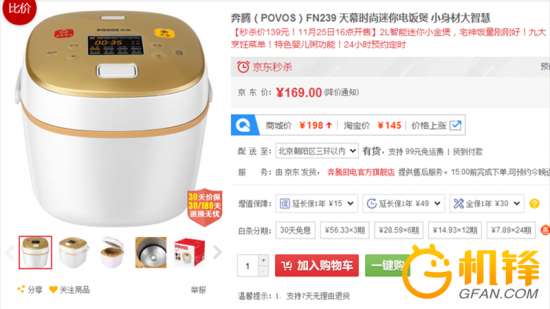 - 2017年1月6日【家电行情】11月25日,奔腾(POVOS)这款型号为FN239的迷你电饭煲,内胆容量2升,适合小两口或三口家庭使用。内胆壁附着有玫金聚能涂层,有效提升热对流,加速食物沸腾。拥有六段智能烹饪程序,支持24小时预约、定时,采用了直观的天幕操控设计,配备大尺寸液晶显示屏,操作更加直观简便。内置了煮饭,煲汤,蛋糕煲仔饭,婴儿粥、酸奶等智能烹饪菜单。加热方式为底盘加热,配合顶部设有的感温探头,可实现对温度...
