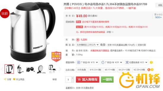 - 2017年1月6日【家电行情】12月14日,奔腾(POVOS)电水壶电热水壶1.7L304不锈钢食品级电水壶采用三层锻压的国家标准食品级304不锈钢,耐热耐腐蚀;1800W大功率加热,1壶水约3分钟烧热;1.7L容量,适合日常使用;10000以上使用频次,寿命较长。360°可旋转底座,重1.1kg。奔腾成立于1986年,是国内知名的小家电品牌。京东目前售价49元,有需要的朋友可以关注。...