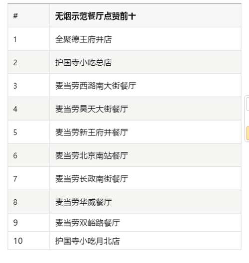 - 2017年1月5日原标题:北京市822家餐厅申报创建无烟餐厅被抽查餐厅近七成合格人民网北京1月4日电(孟竹)自2016年11月1日北京市启动创建无烟示范餐厅活动以来,已有822家餐厅申报创建无烟餐厅。记者今日从北京市控烟协会获悉,截至目前,北京市共出动300余名控烟志愿者已查访545家申报餐厅,其中362家餐厅符合申报标准,183家餐厅有待改进。在检查中,北京市共出动卫生监督员1498人次,检查餐饮单位749户次,...