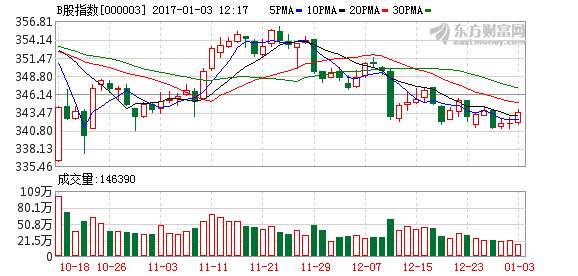 - 2017年1月3日12月30日,B股指数早盘小幅上涨后震荡下跌,报收341.80点,下跌0.05点,跌幅0.01%,总成交额1.56亿美元;深证B指开盘震荡下跌,直至尾盘迅速拉升,指数由绿翻红,报收1127.70点,上涨2.53点,涨幅0.22%,总成交额1.05亿港元。早盘小幅上涨后震荡下跌,报收341.80点,下跌0.05点,跌幅0.01%,开盘震荡下跌,直至尾盘迅速拉升,指数由绿翻红,报收1127.70点,上...