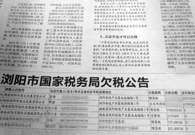 - 2017年1月3日▲网上曝光的浏阳河酒业欠税情况。网络截图京华时报制图谢瑶一曲“浏阳河”唱响全国,也成就了与这首歌同出一地的浏阳河酒,然而近日一条浏阳河酒业陷入停产的消息却将其推至风口浪尖。冰冻三尺非一日之寒,浏阳河酒业陷入困局其实早就露出端倪。浏阳河陷停产风波不久前市场传出消息,浏阳河酒于近日下发落款日期为“2015年5月”的《紧急通知》称:“公司目前已无法进行正常的生产经营,生产、销售全面停滞,也无力继续维持公...