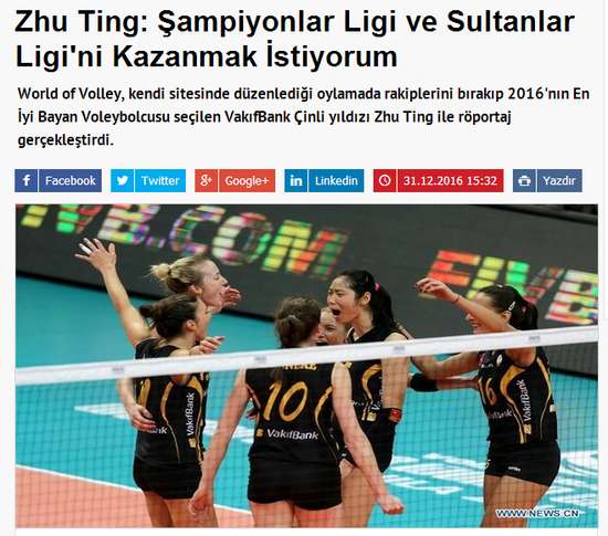 - 2017年1月2日网易体育1月1日报道:北京时间1月1日消息,加盟到土耳其联赛,她的表现征服了所有人。而近日朱婷接受土耳其媒体voleybolx采访时,透露自己不希望自己的旅欧之旅来也匆匆去也匆匆,而谈到里约奥运会之旅时,朱婷表示集体荣誉要比个人荣誉更高大上。在里约奥运会上,朱婷为逆袭夺冠立下汗马功劳,凭借近乎完美表现,自己也荣膺MVP奖项。而在朱婷看来,对自己的意义更大,“我们的目标不是金牌,但我们自信能拿到一枚...