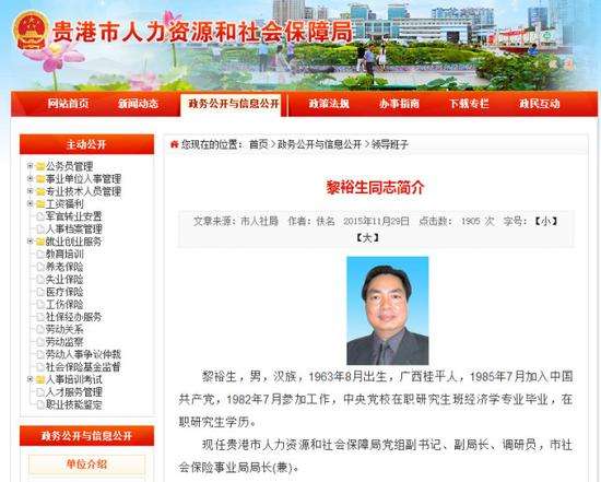 - 2017年1月1日(原标题:广西贵港人社局一副局长桥头失联现场留有遗书)12月19日上午,贵港市人力资源和社会保障局副局长黎裕生在贵港市郁江二桥失联,现场留有遗书。目前,当地已经组织公安等部门进行搜救。当地公安部门通报称,12月19日上午11时41分,贵港市人社局副局长黎裕生使用的轿车停靠在郁江二桥桥头处,黎裕生疑似跳江。有关部门赶到现场调查发现,该车辆确实为黎裕生日常使用,且车内留有一份遗书。随后,相关部门调取周...
