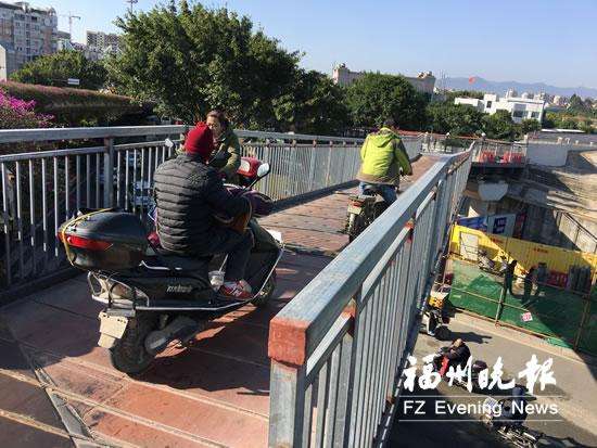 - 2017年1月1日12月17日讯(记者李锦清文/摄)因环南台岛江滨休闲路建设需要,三县洲大桥南桥头旧人行桥要拆除,建新人行桥。为了保证施工期间市民通行,施工方搭建临时人行天桥。记者昨日看到,临时天桥已经投用。临时天桥入口距离旧人行桥入口十多米,现场通过护栏增加了一段两米宽的非机动车道。目前使用的临时人行天桥可保证施工期间市民的正常通行。施工方表示,将力争在明年春节前完成永久桥第一联的主体钢结构施工。施工期间,为减轻...