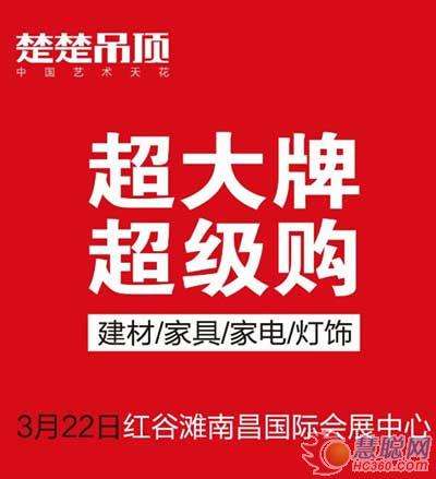 - 2016年12月31日3月22日,楚楚南昌“超大牌超级购”大型新春盛惠即将引爆,此次盛会汇集近40个国际国内一线家居建材品牌,超级优惠震撼开启!楚楚吊顶南昌超大牌超级购即将引爆新春盛惠找总裁,抢惊喜!惊喜一:抢购款9.9元/片(原价:405元/M2),前50户享受;惊喜二:经典套餐特价基础上,再享受总裁签售工厂补贴?元;惊喜三:?惊喜四:?惊喜五:?总裁提醒:仅3.21前的VIP客户才能参加3.22当天签售活动(VIP...