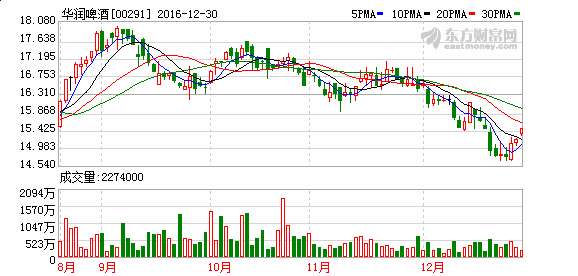 - 2016年12月29日润啤(00291)成功收购雪花49%股权啤酒业或上演“一超多强”智通财经获悉,华润啤酒(00291)于2016年10月11日已完成收购华润雪花啤酒49%已发行股本总额,华润雪花啤酒成为该公司的全资附属公司。智通财经了解到,据国家统计局公布的相关数据显示,目前华润雪花啤酒市场占比约为24.77%,百威英博占比为15.8%。而青岛啤酒和燕京啤酒的占比则分别为18%和10.24%。此外,据中国商务部发布...