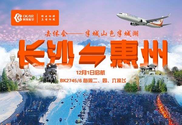 - 2016年12月26日民航资源网2016年11月23日消息:12月1日起,正式开通长沙=惠州航线,航班号:BK2745/46;班期:每周246。提起长沙,你第一反应是什么?臭豆腐、嗦螺、口味虾、米粉,还是红烧猪脚,腊鱼腊肉、剁椒鱼头、毛氏红烧肉?如果是这些,那么恭喜你,果真是一枚资深吃货!长沙地处湖南省东部偏北,湘江下游和湘浏盆地西缘,占据独特的地理优势,不光是美食文化丰富,而且历经三千年城名、城址不变,因此又有“屈贾...