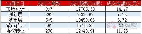 - 2016年12月22日10月21日晚报做市指数涨0.05%绿创环保暴涨30倍广告:30天理财产品9%年化收益登陆新三板讯:截止10月21日收盘,新三板市场成交量为1.78亿股,出现成交的有897只股票,成交总额14.47亿元。目前为止,新三板总挂牌9227家,创新层953家,基础层8274家;做市转让1645家,协议转让企业7582家。新三板市场今日最大的特征就是成交额的大幅提升。由于东海证券成交超过4亿元、宏济堂成交...