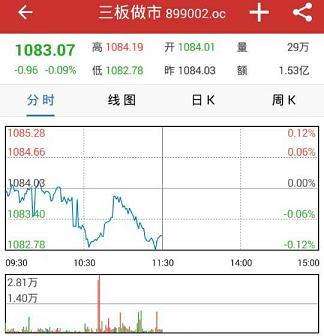 - 2016年12月22日中国网财经10月21日讯今日新三板做市指数开盘后开始大幅震荡,最低点1082.78点。截至午间收盘,三板做市指数报1083.07点,跌0.96点,跌幅0.09%,成交1.53亿元。分交易方式看,459家做市转让公司发生交易,成交3501.38万股,成交额1.62亿元。个股方面,维森信息涨13.21%,领涨做市个股,另外,中机非晶、蓝波绿建、长潮股份、汇龙科技、春茂股份、绿健神农、洁华控股等涨幅居前...