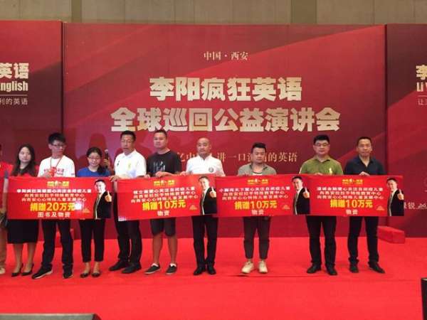- 2016年12月22日]7月24日,李阳疯狂英语全球巡回公益演讲走进西安,“李阳疯狂英语”创始人李阳老师亲亲临现场主讲...7月24日,李阳疯狂英语全球巡回公益演讲走进西安,“李阳疯狂英语”创始人李阳老师亲亲临现场主讲,让西安5000余多名学生家长感受了“疯狂英语”的独特魅力。同时,李阳疯狂英语特别关注自闭症儿童,向西安拉拉手特殊教育中心和西安心心特殊儿童发展中心捐赠了价值20万元的图书和物资。整个演讲围绕英语学习、坚...