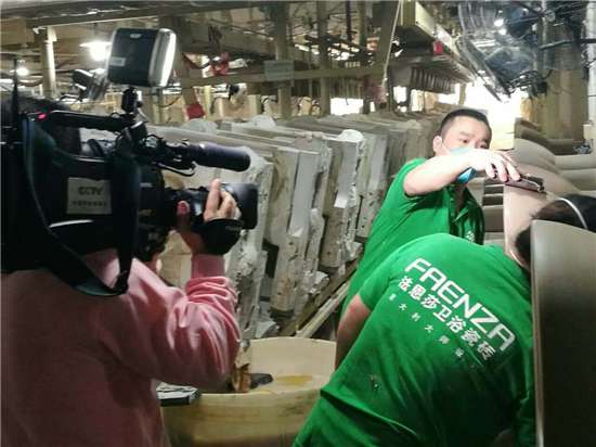 - 2016年12月22日【CCTV2来访法恩莎卫浴】11月30号上午,央视二套记者造访法恩莎卫浴,深入生产一线。在法恩莎卫浴相关领导的陪同下,央视记者进入法恩莎生产车间实地考察。对产品生产线及工艺流程进行一番了解与接触后,美女记者表示对法恩莎卫浴严把质量关口严抓生产技术的工匠精神十分赞赏。央视二套此番前来,身体力行为中国制造点赞,法恩莎卫浴也用实力得到了央视权威认可!拍摄一线工人劳作实况摄像大哥为法恩莎卫浴点赞不久前,央...