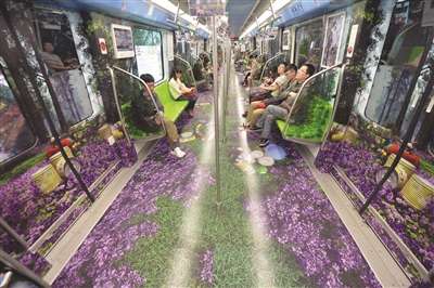 - 2016年12月20日在南京乘坐地铁3号线,你会不小心误入薰衣草的花海、和喜羊羊相伴、随手可摘一朵蒲公英……昨天起,南京地铁三号线开出一趟3D效果内饰的列车,把春天的美景种进了地铁车厢。记者了解到,这趟“开往春天的列车”,由南京华泽传媒年轻的设计师们打造,由六节以3D概念打造的车厢组成,每节车厢都以无限的想象力营造出逼真的游园场景。整辆列车被春色环绕,灿烂的向日葵,浪漫的樱花,白色的满天星,还有蓝天,绿地,整列车厢浑然...