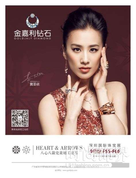 - 2016年12月20日钻石携手黄圣依明星代言续约仪式在广州举行,当天,黄圣依小姐一袭紫色长裙佩戴金嘉利钻石首饰惊艳亮相续约仪式,美艳迷人!金嘉利钻石董事长吴德荣先生以及金嘉利钻石高层领导齐聚广州出席仪式。黄圣依在签约仪式中做了简单发言并表达了诚挚祝福!时光在行走,在过去的两年里,金嘉利钻石和黄圣依相伴走过八心八箭完美切工的旅程,一路璀璨闪耀。近日,黄圣依不仅在17日晚腾讯应用宝“星APP之夜”上荣膺“最具人气女演员奖”...