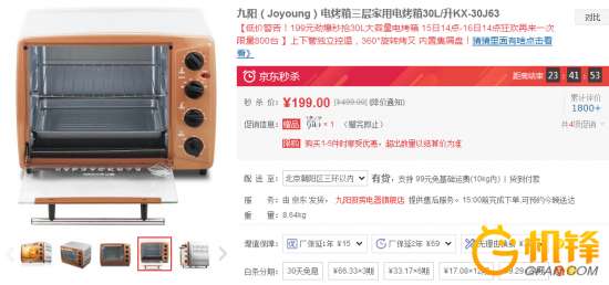 - 2016年12月18日【家电行情】12月15日消息,九阳三层电烤箱KX-30J63尺寸为430*280*310mm(长*宽*高),内层材质为不锈钢,烤盘为镀锌板,重8.5kg。温控形式为机械温控器,容量为30L,适合4-6人使用。搭载360°旋转烤叉,上管调节和下管调节两个旋钮可实现上下独立控温。上火高下火低、上火低下火高和上下火同温三种烘烤模式。钢化玻璃门防爆耐高温,密封性强。多面散热排风迅速。此外,内置集屑盘,让清...