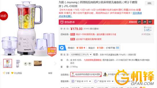 - 2016年12月18日【家电行情】12月13日,九阳(Joyoung)料理机绞肉机榨汁机家用婴儿辅食机(榨汁干磨搅拌)JYL-C022E搅拌,榨汁,碎肉,研磨,碎冰等料理功能。商品毛重2.785kg,高低两档设计,多杯体满足不同需求。年末大收官,该产品目前179元,13日14点-14日14点劲爆秒抢多功能料理机,限量2000台,有需要的用户可以关注。...