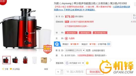 - 2016年12月18日【家电行情】12月7日,oyoung九阳JYZ-D52多功能榨汁机,内部采用304不锈钢刀盘,轴心粉碎,细密滤网,两档调速适用于软硬不同的蔬果,66mm大口径,可拆装式结构便于清洗。此款额定功率250W,杯体容量400ml。京东目前售价79元,部分地区有货,库存不多下手需快,其他渠道售价139-179元左右。...