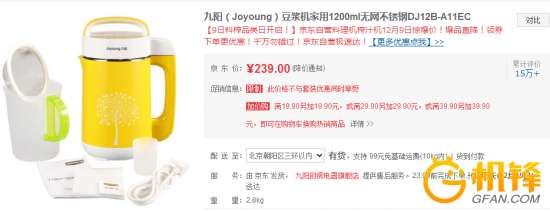 - 2016年12月18日【家电行情】12月9日消息,九阳豆浆机DJ12B-A11EC内层以304食品级不锈钢制成,外观时尚,保温防烫。1000-1200ml的容量可供2-4人饮用,满足家庭需求。配置多功能控制面板,一键开启关闭便于操作。精钢三叶研磨刀将豆浆打磨的更加精细细腻,缩短粉碎时间。此外,温感防溢棒防止熬煮过程中豆浆溢出,文火熬制锁住营养不易糊锅。目前东优惠价239元,现在下单即可享受包邮服务与加价购活动。有需要的...