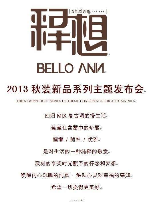 - 2016年12月18日有限公司于2013年3月31日——4月2日在深圳大梅沙海景酒店海峰阁中庭举办2013秋装新品系列主题服饰有限公司创建于二00五年,是集服装开发设计、生产、销售为一体的现代化公司。采用全新(日本)制衣设备,采取高效管理运作模式,使每一件新产品都有严格的品质保证,目前公司已与国际上多家时装设计公司保持良好合作关系,并深受好评。公司自成立以,不断创新发展,于2005年引进西班牙经典时装BELLOANN,...