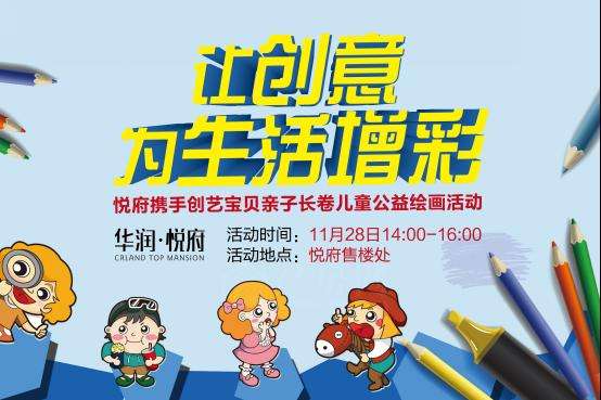 - 2016年12月18日我们羡慕莫奈笔下的日出,道尽了色彩的灵性和生动;我们欣慕梵高笔下的向日葵,感受到艺术的创造力与激情。当生活只有一种颜色,创意为它增彩更多。悦府()携手创艺宝贝亲子长卷儿童公益绘画活动,这一次拿出你的创意,以你手画你心,共同画出五彩斑斓的精彩生活吧~七彩创意绿色未来为增进家长与孩子间的互动,激发孩子感受自然美、表现绿色美、创造环保美的情感体验,提升孩子对绿色环保艺术的兴趣和热情。此次以“绿色未来”为...