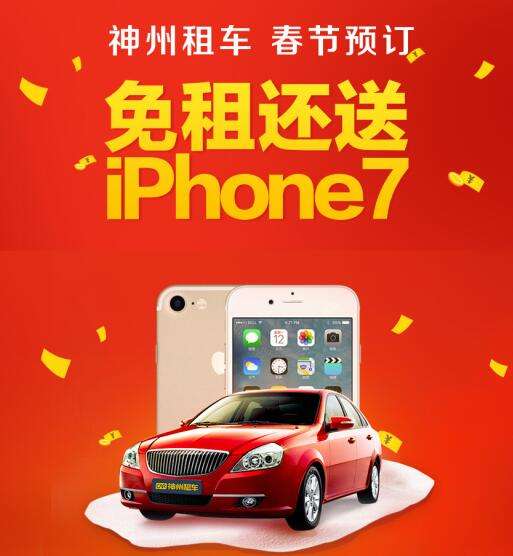 - 2016年12月17日12月16日消息,神州租车本周启动2017年春节租车预订,并推出三重优惠:消费者除了可以享受租金立减和免费租车券优惠外,还有机会赢取iPhone7和代金券。据了解,凡是在2017年1月24日至2月1日期间租车的消费者,在订单结算后关注神州租车官方微信(ID:carzuche),即可获得三次抽奖机会,有机会赢得iPhone7一部,以及最高50元的电子优惠券。同时,租期在4天及以上的消费者,还可以享受...