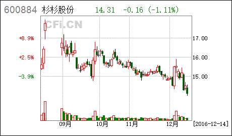 - 2016年12月16日昨日,宁波杉杉股份有限公司发布《2016年半年度业绩预告》,报告显示,预计2016年半年度实现归属于上市公司股东的净利润与上半年同期(法定披露数据)相比,将同比下降60%-70%。其中公司2016年半年度实现归属于上市公司股东的扣除非经常性损益的净利润同比去年预计上升130%-150%。杉杉童装称,业绩预减主要系公司上年同期出售可供出售金融资产宁波银行股权获得投资收益(含税)61,024.18万元...
