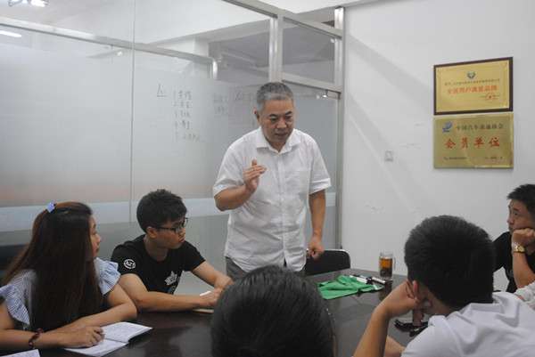 - 2016年12月15日2014年08月29日,靓车会北京总部组织举办了一场培训会,此次培训会由曹总主持,会上共有10人参加,主要包括加盟商和公司员工,会议从汽车行业现状、汽车美容、靓车会商业模式、经营、服务、营销、店长这七个方面阐述了靓车会的宗旨及经营理念,现场气氛十分热烈,在座的加盟商和员工们积极讨论,从而让大家对汽车行业及靓车会有一个全面而深刻的了解。(曹总积极与大家交流)会上曹总明确表示靓车会的核心要素就是“品质...