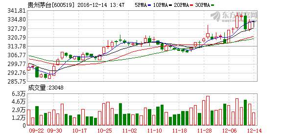 - 2016年12月14日【中金:上调贵州茅台2017年目标价至472元还有42%上涨空间】12月14日,中金公司分析师邢庭志等发布报告称,将贵州茅台2017年销量预期上调至31380吨,较2016年增加5000吨;上调贵州茅台2017年目标价16.5%至472元,维持推荐评级。(证券时报)邢庭志等发布报告称,将2017年销量预期上调至31380吨,较2016年增加5000吨;上调贵州茅台2017年目标价16.5%至472...