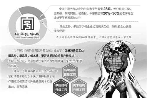 - 2016年12月14日原标题:中华老字号如何迸发新活力目前,全国由商务部认定的中华老字号共1128家,多数老字号企业经营情况欠佳,不少老字号甚至处于“僵尸”状态,空有品牌无产品。在全球最具价值品牌100强榜单中,欧美日上榜品牌超过半数,而中国仅有贵州茅台一家上榜。为了更好地培育和振兴中华老字号品牌,由《参考消息》报社主办,中国品牌建设促进会、中国国际贸易促进委员会、中国证券基金业协会共同支持,同仁堂、全聚德、稻香村等老...