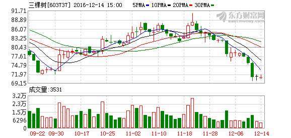 - 2016年12月11日【三棵树:前三季度营收涨幅超三成主营产品墙面漆持续高速增长】10月14日,三棵树(603737.SH)发布三季度业绩报告,公司1-9月实现营业收入约12.2亿元,同比增长30.6%;营业利润同比增长20.4%。其中,第三季度营收约4.8亿元,同比增长36.4%;归属于上市公司股东的净利润同比增长34.5%。公司表示,前三季度营收增长主要系公司主营产品墙面涂料销售持续大幅增长所致。(603737.S...