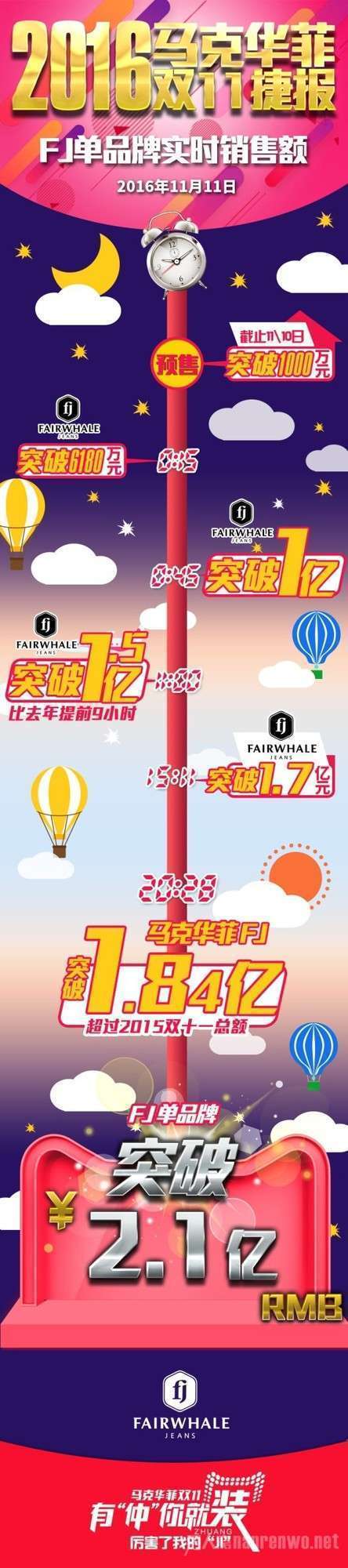 - 2016年12月7日11月11日0点,双11全球狂欢节正式拉开序幕,其中45分钟内销售额即破亿。据悉,马克华菲自2001年成立以来,根据不同的消费客群打造出7个不同风格的品牌,分别是:马克华菲FJ、华菲型格Reshake潮牌男装、马克华菲创意都市女装、童装、鞋品。马克华菲2015年双11当天总销售额达到1.9亿元。...