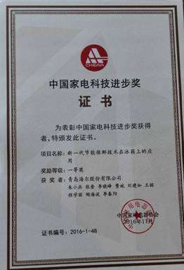 - 2016年12月6日11月10日,2016年“中国家电科技进步奖”在中国家用电器技术大会现场颁发。经过评选,海尔冰箱提报的“新一代节能保鲜技术在冰箱上的应用”项目获评“科技进步奖一等奖”,海尔也是获评一等奖的唯一冰箱品牌。据中国家用电器协会有关人员介绍:“节能、保鲜是冰箱消费者一直以来最关注的问题,也是冰箱行业一直研究的课题。”通过3年的研发,海尔冰箱该项目突破行业节能保鲜技术瓶颈,以风冷技术为基础,率先研发“精控微...