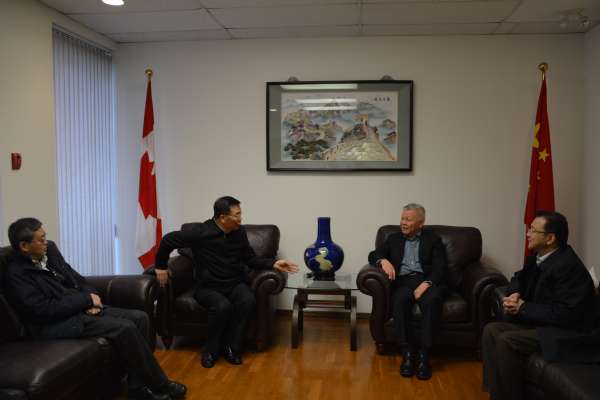 - 2016年12月5日2016年11月20日,王新平总领事应约会见来阿尔伯塔省交流访问的贵州茅台集团党委书记、总经理李保芳一行。茅台集团党委副书记赵书跃、加拿大SinocanSupply公司董事长马君强等在座。李保芳介绍茅台集团的生产经营及开拓海外市场情况,表示茅台集团将在发扬传统优势基础上,进一步开拓创新,推动茅台这一国家民族品牌更好地走向海外市场。王总领事介绍领区主要情况及双边关系,表示总领馆致力于促进中加经贸合作...