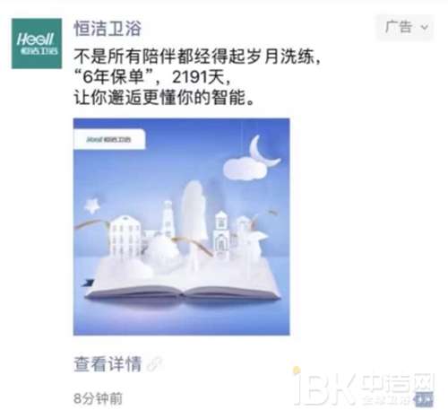 - 2016年12月1日10月份,很多人的朋友圈都被“一个智能马桶的长情告白”刷屏。这份告白由恒洁卫浴发出,用故事的形式讲述在不同的人生阶段,陪伴在身边从10岁到23岁到30岁,从纯真的友谊到母亲的呵护再到伴侣的相依相守,每个用心生活的人都渴望一份可靠、省心和长久的陪伴。而6年质保服务,同样像贴心“爱人”一般,长情地陪伴着每位消费者。卫浴多年来所取得的成绩,都建立在消费者信任的基础之上,不辜负信任,是我们最想对消费者说的...