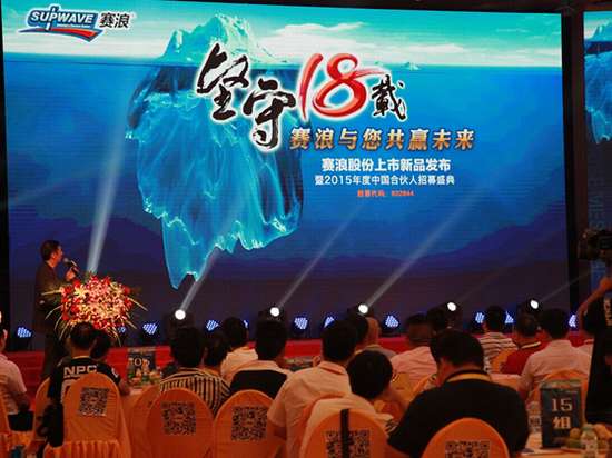 - 2016年11月30日8月18日,“坚守18载·赛浪与您共赢未来——赛浪股份(股票代码:832844)上市新品发布会暨2015年度中国合伙人招募庆典”在北京召开。作为中国汽车后市场O2O第一股,走过18年辉煌历程的赛浪股份以上市完成了华丽转身,而此次大会更成为赛浪事业一个重要的里程碑。8月18日,“坚守18载·赛浪与您共赢未来——赛浪股份(股票代码:832844)上市新品发布会暨2015年度中国合伙人招募庆典”在北京召...