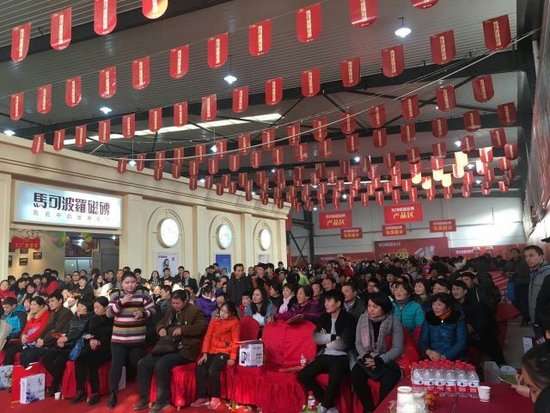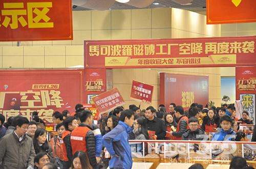 - 2016年11月28日]2016年11月26日,马可波罗瓷砖“工厂空降,再度来袭”,年度收官大促活动在安徽中心仓成功举办并圆满落幕!2016年11月26日,马可波罗瓷砖“工厂空降,再度来袭”,年度收官大促活动在安徽中心仓成功举办并圆满落幕!此次活动不仅为广大业主朋友提供了工厂价、爆款价瓷砖,还设置了欢乐砸金蛋、幸运抽大奖等环节,更有琥珀地板、恒洁卫浴、美尔凯特吊顶、瑞丽宜家等八大品牌联袂献礼,让每位在现场的顾客朋友们都...